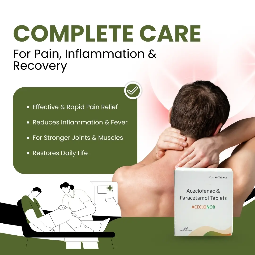 ACECLONOB by Noble Pharmaceuticals is a dependable ache-relief medication that enables lessening inflammation and discomfort efficiently. Moreover, it really works swiftly to alleviate joint and muscle pain, thereby improving mobility. Consequently, ACECLONOB helps faster recovery, making it dependent on desire for individuals in search of short and lasting remedy from pain and swelling.